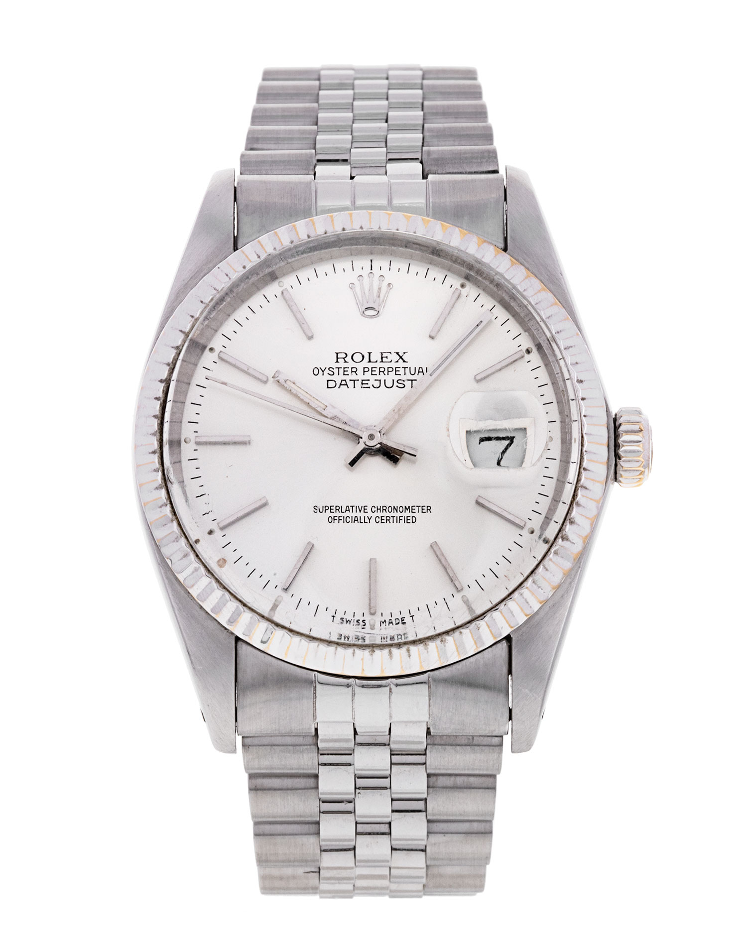 Diese spezifische Rolex Datejust 16014 hat ein silber baton ziffernblatt mit einem metall / keramik armband. Diese Rolex wurde einer gründlichen Prüfung der Wasserbeständigkeit, Genauigkeit, Funktionalität und des Zustands unterzogen, um den Grad der Überholung zu bestimmen, der zur Einhaltung unserer strengen Standards erforderlich ist. Sie wurde auch mit technischen Dokumenten und Herstelleraufzeichnungen verglichen, falls vorhanden, um Echtheit und einen einwandfreien Werdegang zu gewährleisten. Zu Ihrer Sicherheit verfügen alle unsere Uhren über eine 24-monatige Garantie. Einer unserer Poliertechniker hat die durch tägliche Abnutzung entstandenen Makel auf dem Gehäuse und dem Armband dieser Uhr entfernt, weshalb diese Uhr nicht mit der verbleibenden Herstellergarantie geliefert wird.