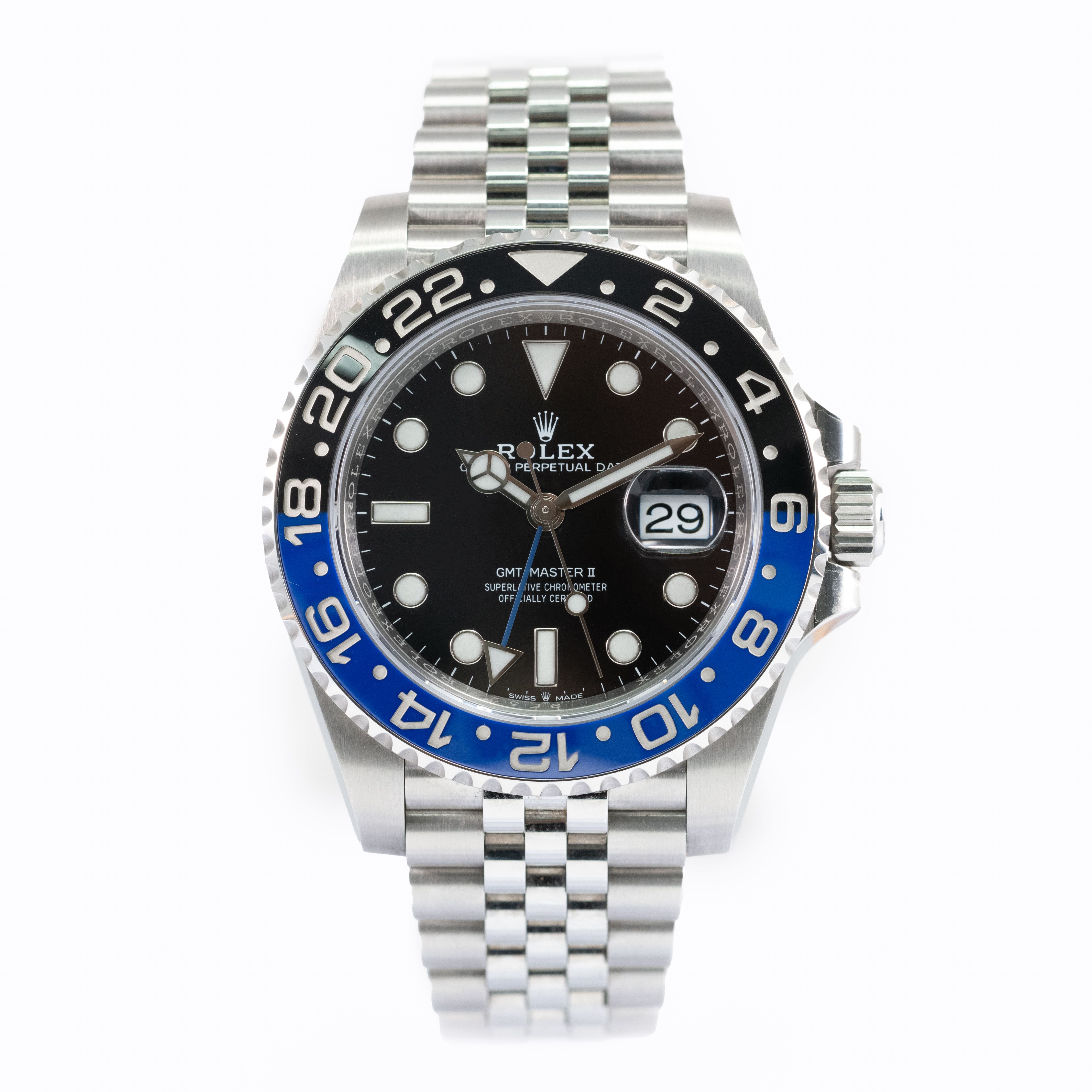 Diese spezifische Rolex GMT Master II 126710 BLNR hat ein schwarz ziffernblatt mit einem metall / keramik armband. Diese Rolex wurde einer gründlichen Prüfung der Wasserbeständigkeit, Genauigkeit, Funktionalität und des Zustands unterzogen, um den Grad der Überholung zu bestimmen, der zur Einhaltung unserer strengen Standards erforderlich ist. Sie wurde auch mit technischen Dokumenten und Herstelleraufzeichnungen verglichen, falls vorhanden, um Echtheit und einen einwandfreien Werdegang zu gewährleisten. Zu Ihrer Sicherheit verfügen alle unsere Uhren über eine 24-monatige Garantie. Einer unserer Poliertechniker hat die durch tägliche Abnutzung entstandenen Makel auf dem Gehäuse und dem Armband dieser Uhr entfernt, weshalb diese Uhr nicht mit der verbleibenden Herstellergarantie geliefert wird.