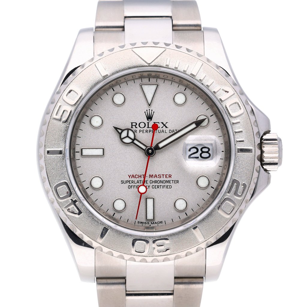 Diese spezifische Rolex Yacht-Master 116622 hat ein platin ziffernblatt mit einem metall / keramik armband. Diese Rolex wurde einer gründlichen Prüfung der Wasserbeständigkeit, Genauigkeit, Funktionalität und des Zustands unterzogen, um den Grad der Überholung zu bestimmen, der zur Einhaltung unserer strengen Standards erforderlich ist. Sie wurde auch mit technischen Dokumenten und Herstelleraufzeichnungen verglichen, falls vorhanden, um Echtheit und einen einwandfreien Werdegang zu gewährleisten. Zu Ihrer Sicherheit verfügen alle unsere Uhren über eine 24-monatige Garantie. Einer unserer Poliertechniker hat die durch tägliche Abnutzung entstandenen Makel auf dem Gehäuse und dem Armband dieser Uhr entfernt, weshalb diese Uhr nicht mit der verbleibenden Herstellergarantie geliefert wird.